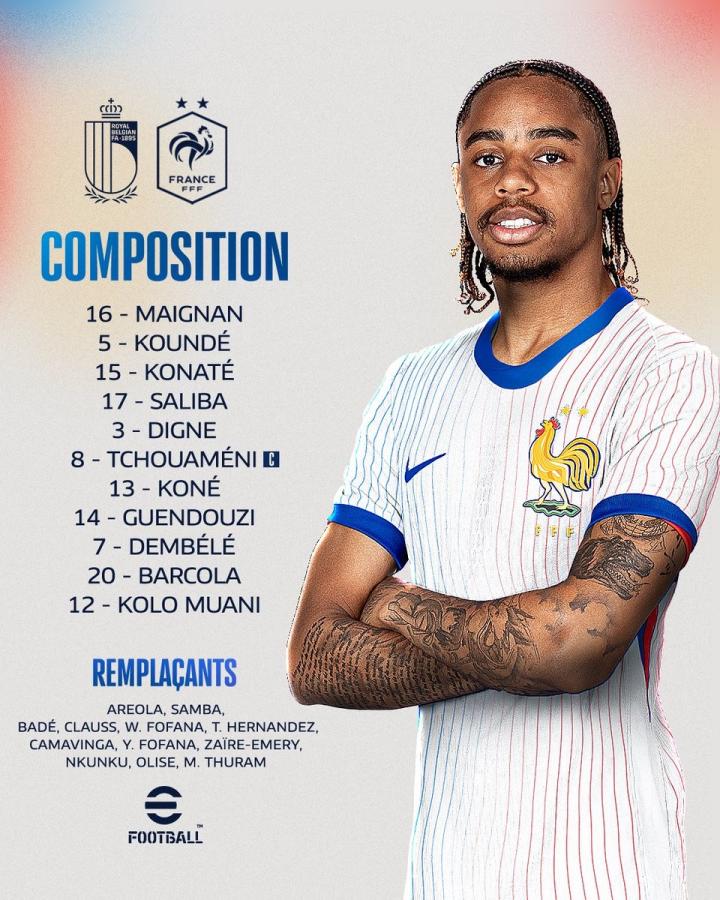 据统计,此役是法国队2024年第7次对阵FIFA排名前十的球队,创造球队单一自然年纪录。