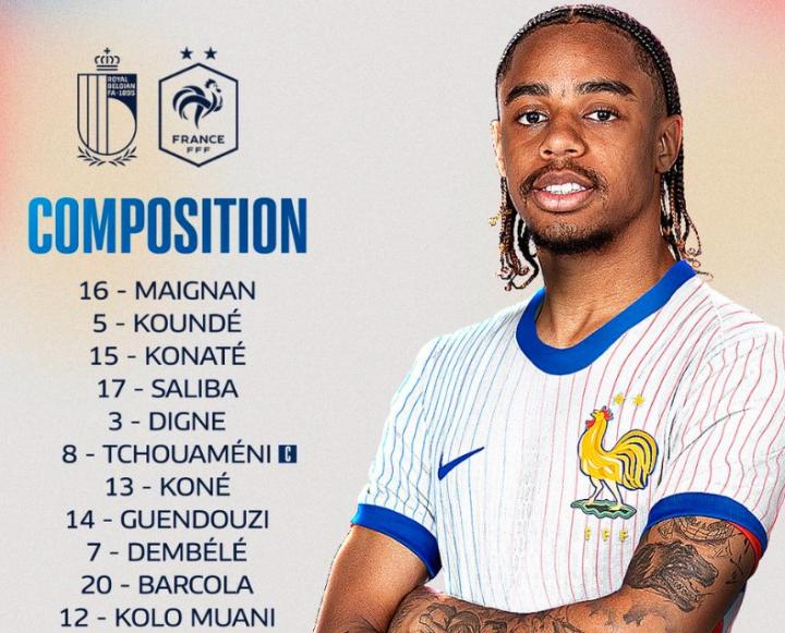 在欧国联A级第四轮法国队客场与比利时的比赛中,来自巴黎圣日耳曼的三名前锋奥斯曼-登贝莱、科洛-穆阿尼以及巴尔科拉组成了高卢雄鸡的前场三叉戟。