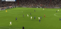 第39分钟,基米希边路斜传送到门前,格纳布里前插慢了一步