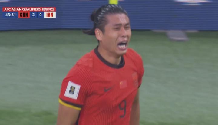 在打入这粒关键的进球后,张玉宁喜极而泣,泪洒赛场,令人动容。