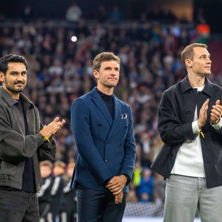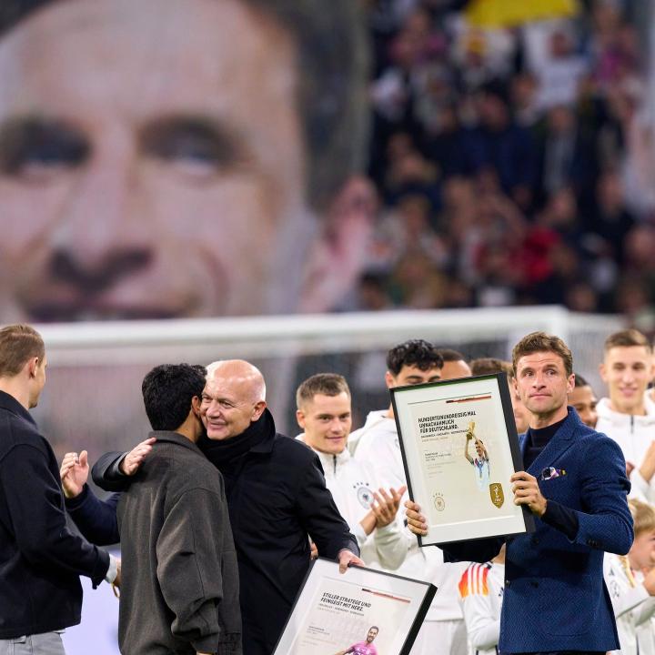 在德国队主场对阵荷兰队的比赛前,德国足协为欧洲杯结束后从国家队退役的四名传奇举办了致敬仪式。穆勒在社交媒体晒照并发表感言。