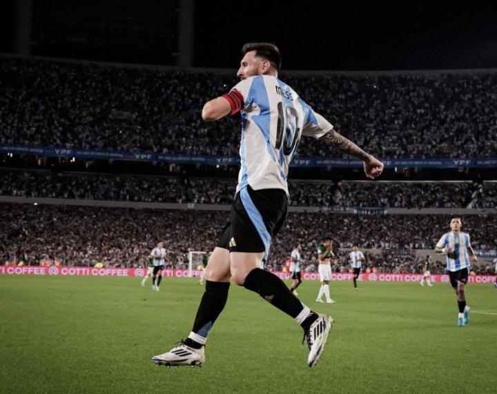 在对阵玻利维亚的世预赛中,梅西完成帽子戏法,同时还送出了两次助攻,直接参与了球队的五粒进球。