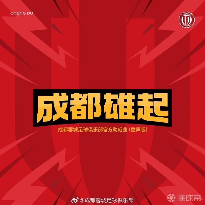10月16日,成都蓉城足球俱乐部发布了官方助威曲的童声版,曲目选择了《成都雄起》这一经典歌曲。