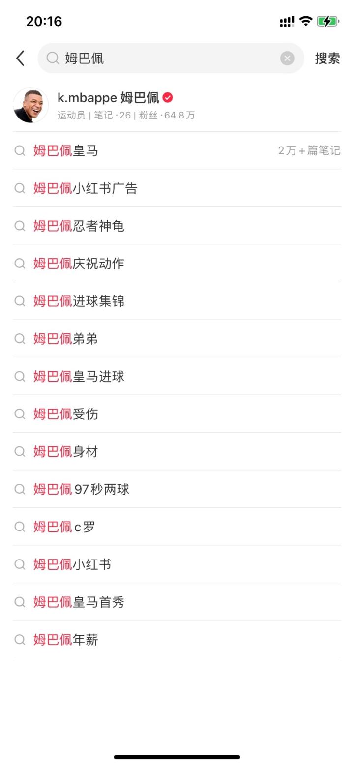 据此前媒体报道称,姆巴佩团队确认,姆巴佩是瑞典强奸案中被指控的对象。“姆巴佩被指控强奸”的话题一度登顶微博热搜榜,不过在小红书平台上,姆巴佩涉嫌强奸没有热搜,搜索框也没有相关的关联词。