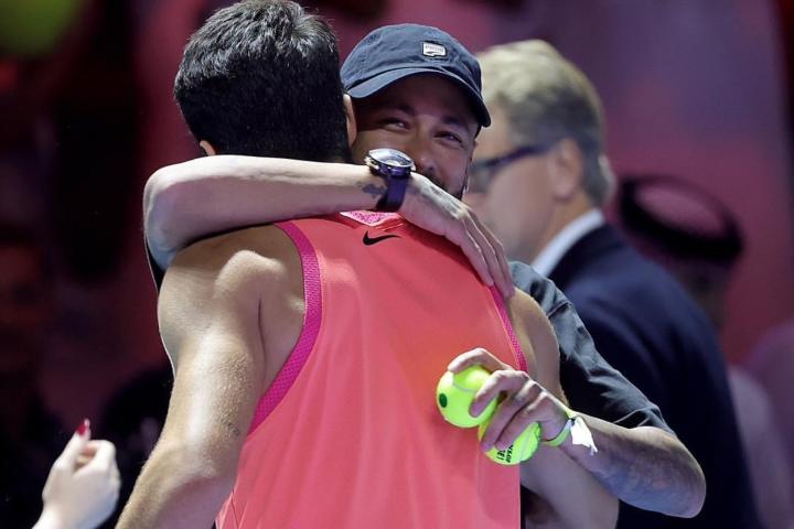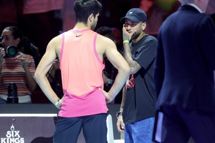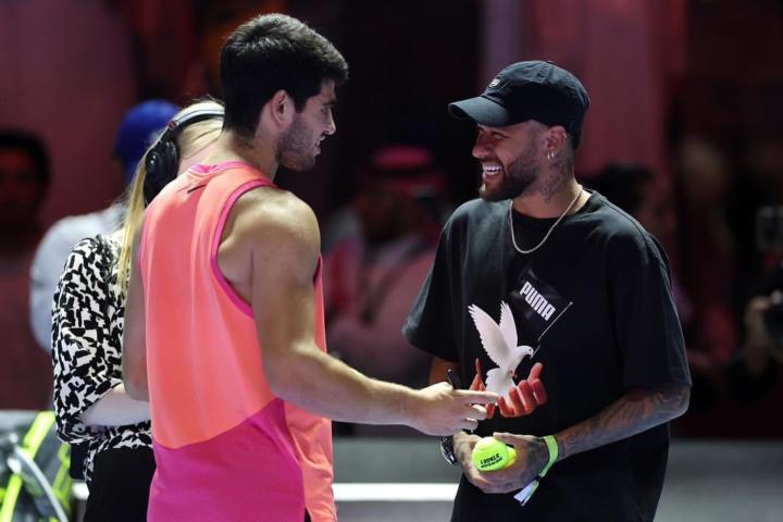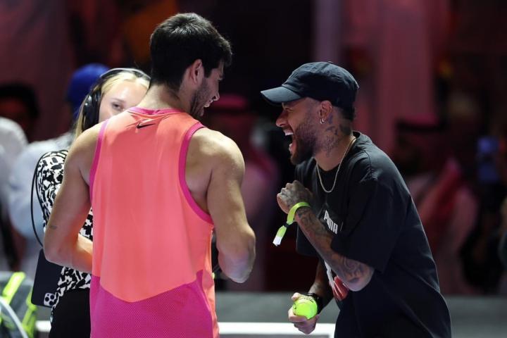 西班牙网球名将阿尔卡拉斯近日正在沙特参加表演赛,这也吸引了内马尔亲临现场。内马尔在个人社媒发布动态,记录下了两人的会面。