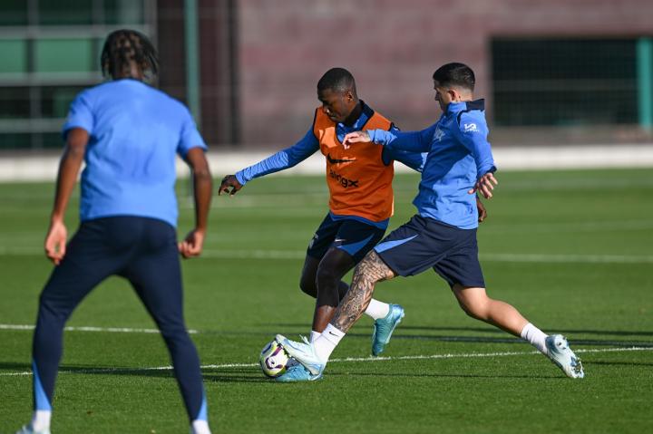切尔西官方晒照,厄瓜多尔中场凯塞多、阿根廷中场恩佐以及葡萄牙国脚菲利克斯、佩德罗-内托和雷纳托-韦加都在科巴姆进行了训练。