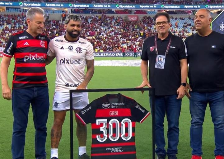 据巴西媒体《GE》的报道,巴甲第30轮弗拉门戈vs弗鲁米嫩塞的比赛开始前,弗拉门戈俱乐部向球队巴西前锋加布里埃尔-巴博萨赠送300场里程碑纪念球衣。