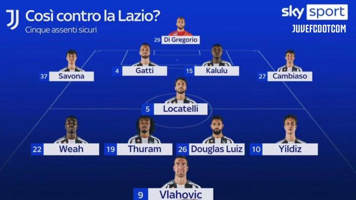北京时间周日02:45,尤文图斯将会在意甲第8轮的比赛中坐镇主场迎战拉齐奥,赛前意大利天空体育预测了蒂亚戈-莫塔此战可能派出的首发阵容。