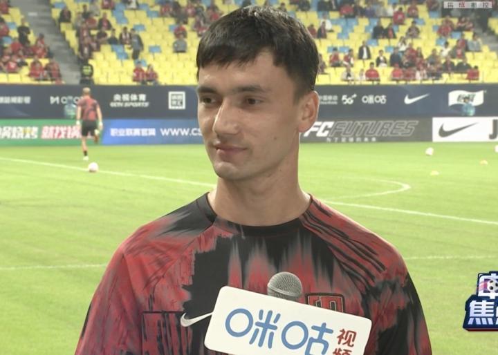 10月18日晚上,在成都蓉城主场对阵上海海港的赛前,成都球员木塔力甫接受了现场的采访。