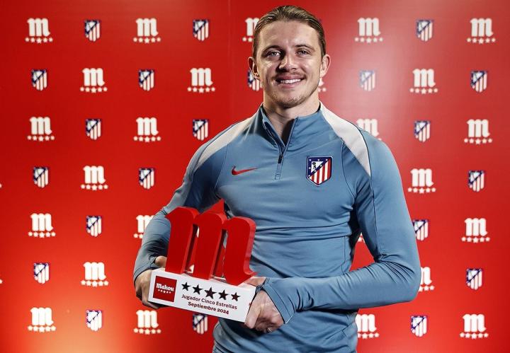 马竞官方晒照,加拉格尔领取队内9月最佳球员奖杯。