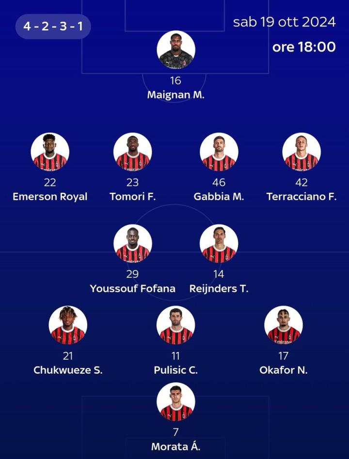 意大利天空体育的报道认为,与上轮比赛米兰客场1-2不敌佛罗伦萨相比,此战保罗-丰塞卡将会安排泰拉恰诺取代停赛的特奥-埃尔南德斯,前场丘库埃泽和奥卡福尔首发。