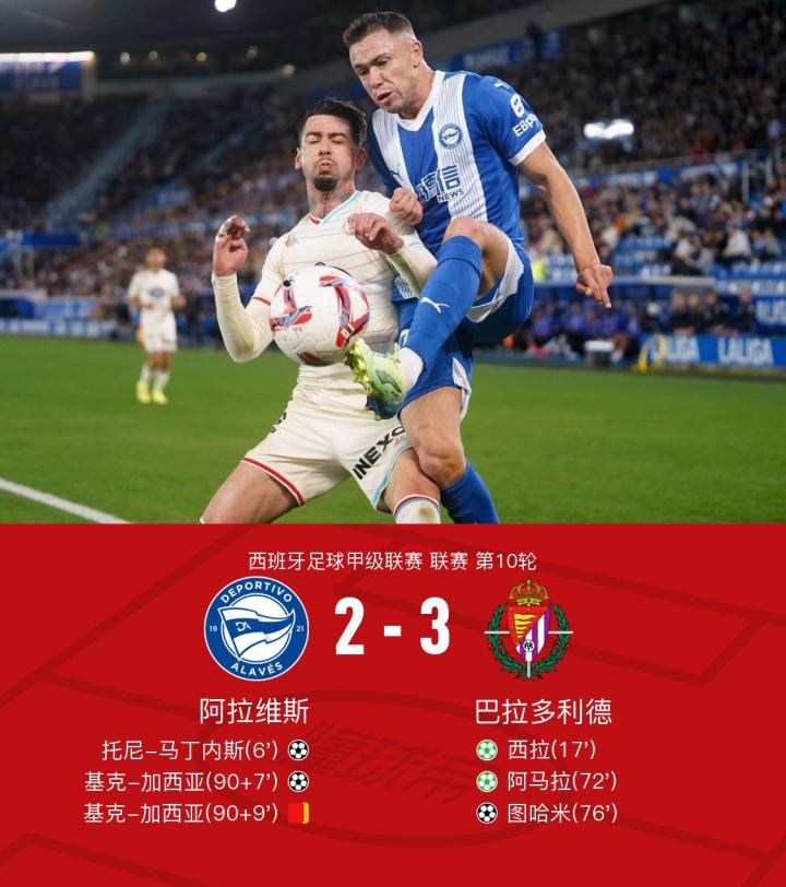 巴拉多利德3-2客胜阿拉维斯,西拉传射,阿马拉、图哈米建功