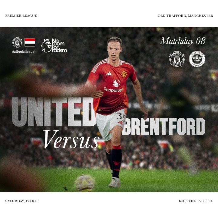 北京时间10月19日晚22点,英超联赛第8轮,曼联将在主场迎战布伦特福德。赛前,曼联官方发布了本场比赛的赛前海报。