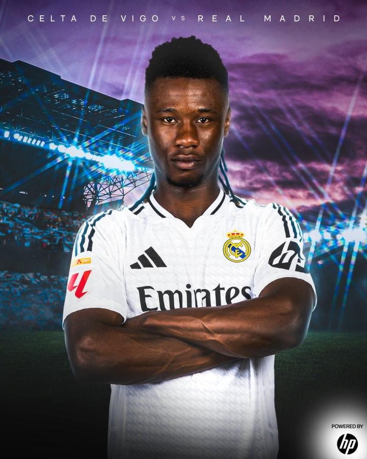 海报中,卡马文加单人出镜。此前对阵比利亚雷亚尔的比赛,卡马文加首发出战,送出了4次抢断、1次解围和1次拦截,帮助皇马在主场2-0战胜对手。