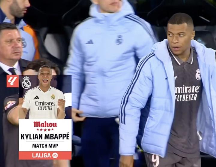 西甲第10轮,皇家马德里客场2-1击败塞尔塔,此役打入一球的皇马前锋姆巴佩当选西甲官方全场最佳球员。