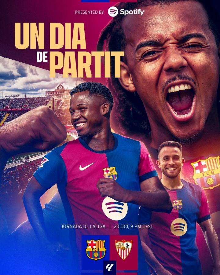 北京时间10月21日凌晨3点,西甲联赛第10轮,巴萨将在主场迎战塞维利亚。赛前,巴萨官方发布了本场比赛的赛前海报。