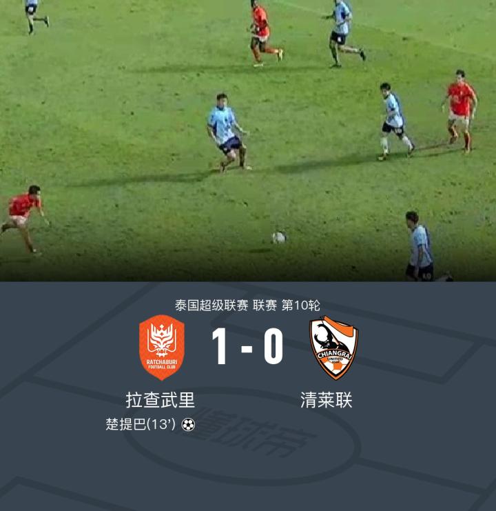 清莱联客场0-1不敌拉查武里,郭田雨打满全场