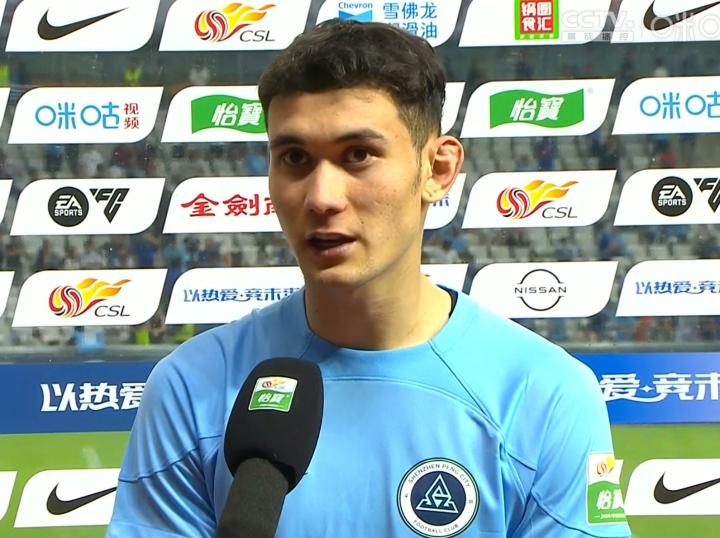 北京时间10月20日晚,中超联赛第28轮,深圳新鹏城在主场0-0战平梅州客家。赛后,新鹏城前锋拜合拉木在场边接受了媒体的采访。