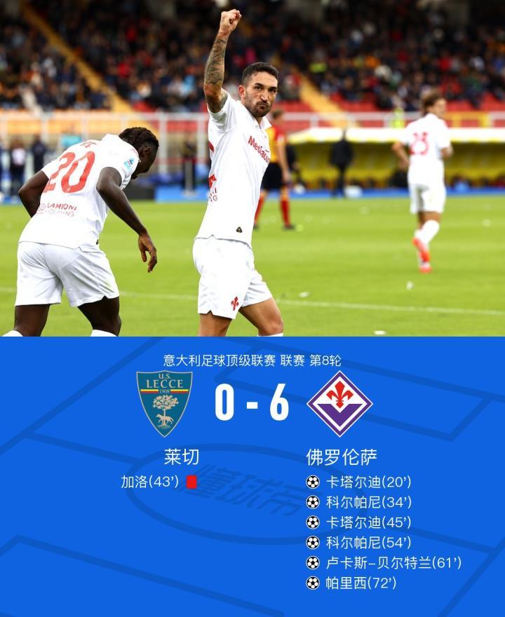 十人莱切0-6佛罗伦萨,卡塔尔迪、科尔帕尼梅开二度