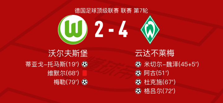 北京时间10月20日沃尔夫斯堡vs云达不莱梅,杜克施得到全场最高的9.2分,维默尔得到全场最低的3.5分