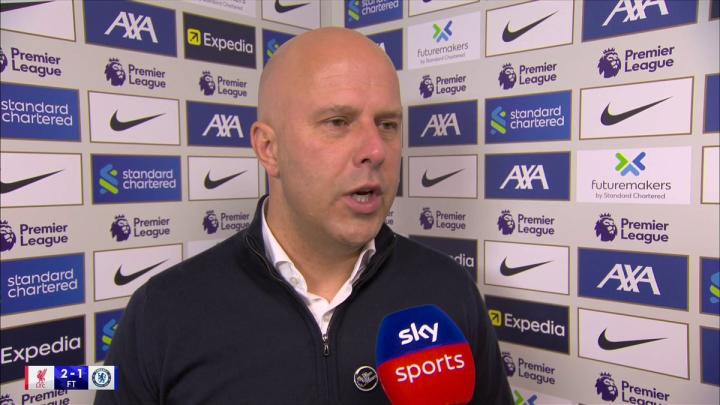 率队在英超第8轮主场2-1击败切尔西之后,利物浦主教练斯洛特接受了来自天空体育的采访。