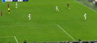 第11分钟,佩莱格里尼下底传中,索默险些将球扑入网窝,皮球中柱