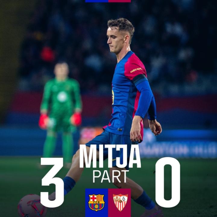 在西甲第10轮的比赛中,巴塞罗那依靠莱万多夫斯基的梅开二度以及佩德里的进球,半场过后就在主场以3-0的比分领先于塞维利亚。