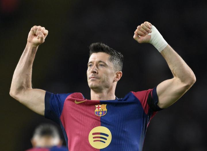 此役主场对阵塞维利亚,莱万在上半场打入两球。