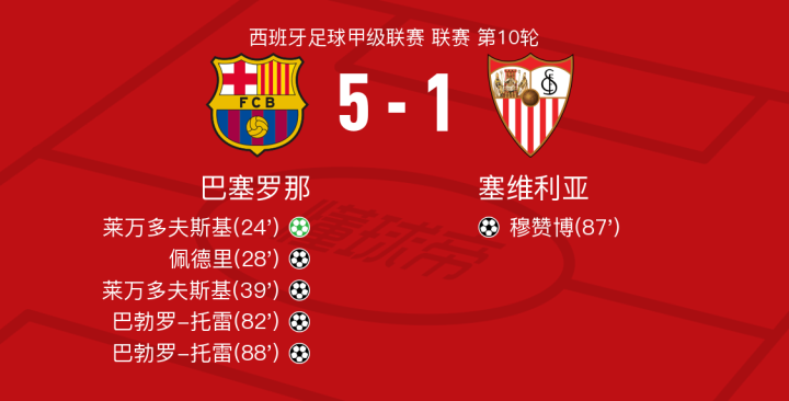 北京时间10月21日巴塞罗那vs塞维利亚,佩德里得到全场最高的8.8分,卢克巴吉奥得到全场最低的5.9分