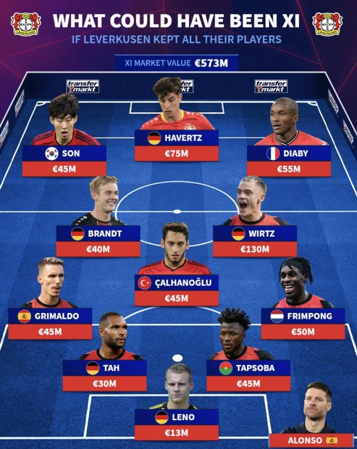 北京时间10月21日,德国转会市场列出了一套曾经在勒沃库森效力过的球员组成的最强阵容。其中,孙兴慜、布兰特、维尔茨等人在列。