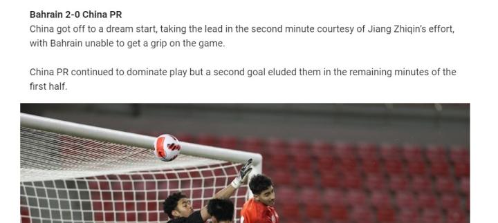 在亚足联官网上,战报的大标题为正确内容,写着巴林U16 0-2中国U16。但在下方的具体新闻介绍中,比分却变成了巴林U16 2-0中国U16。