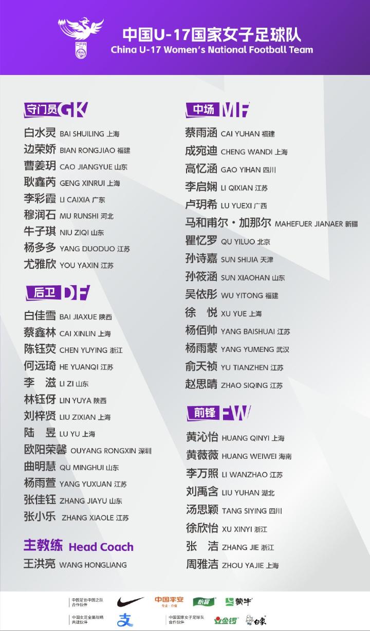 10月21日,中国足协官方公布了最新一期的中国U17女足集训名单,其中江苏10人,上海9人,山东6人。