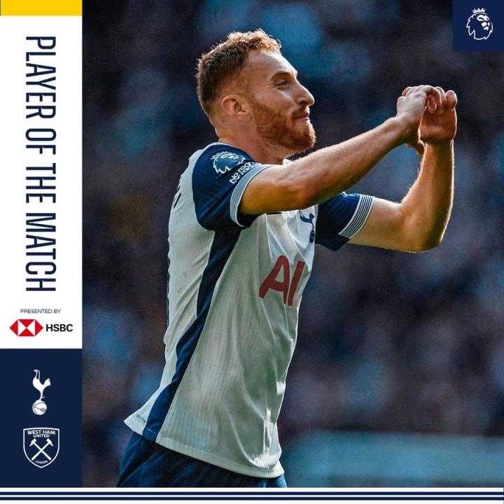 热刺官方消息,库卢塞夫斯基当选对阵西汉姆联球迷票选最佳球员,库卢在这场比赛中打进一球。
