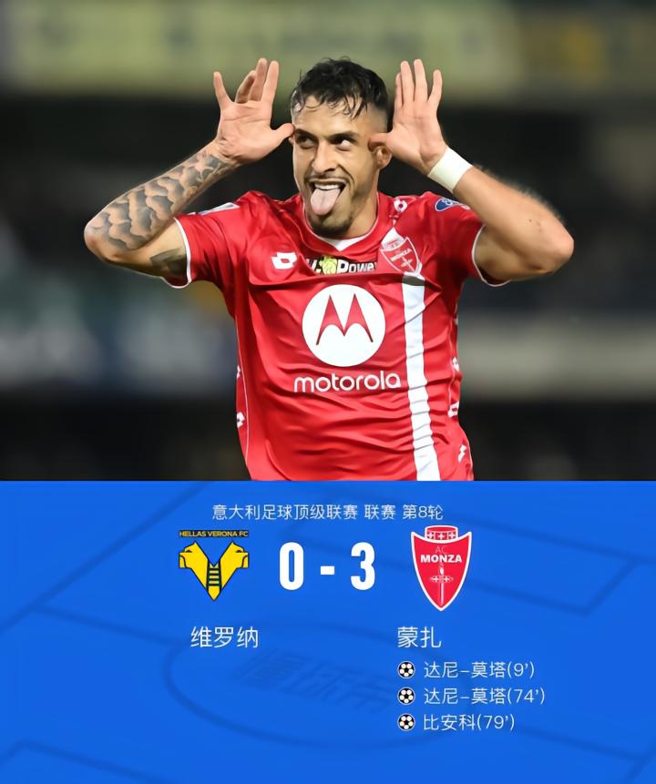 蒙扎3-0维罗纳迎来赛季首胜,达尼-莫塔双响,比安科建功