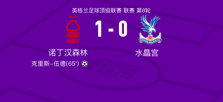 北京时间10月22日诺丁汉森林vs水晶宫,埃利奥特-安德森得到全场最高的8.9分,若塔-席尔瓦得到全场最低的6.3分