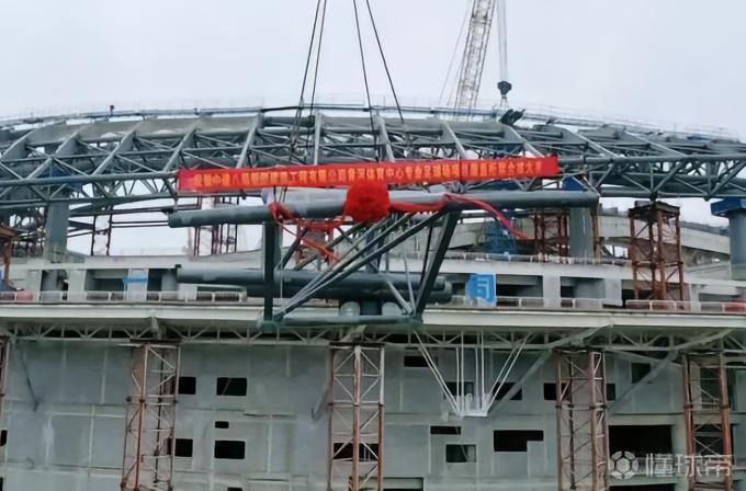 《大众日报》报道,10月21日下午,济南黄河体育中心专业足球场项目屋盖钢结构顺利合拢。