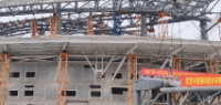 中建八局一公司项目副总工刘秀明在接受采访时介绍说,昨天完成了黄河体育中心足球场屋盖钢桁架最后一榀的吊装合拢,整个黄河体育中心足球场的屋盖钢结构是从今年7月4日完成首吊,到现在,正好是历时三个月的时间。下一步主要是完成屋盖钢结构的一些嵌补杆件安装,后续是要进行屋盖钢结构内部的总桁架以及膜结构的施工安装工作。