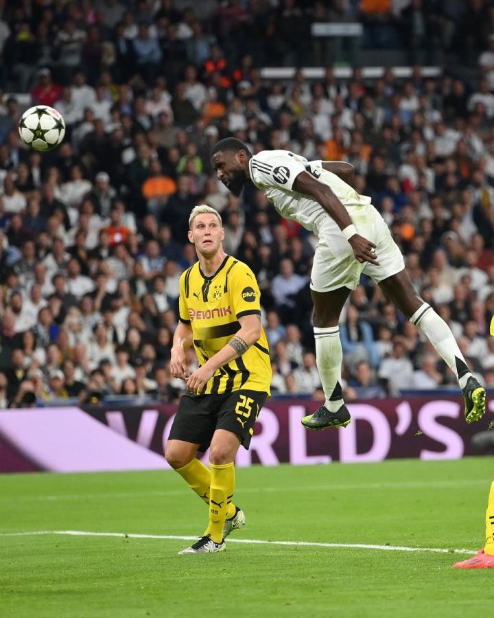 此役主场对阵多特蒙德,在球队0-2落后的情况下,吕迪格在比赛第60分钟接姆巴佩助攻头球破门,帮助皇马扳回一城。