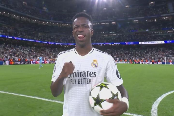 此役主场对阵多特,维尼修斯在下半场打入三球,上演欧冠生涯首次帽子戏法。
