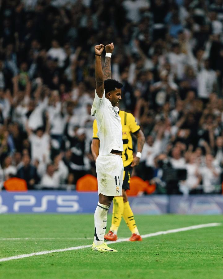 此役主场对阵多特蒙德,皇家马德里在上半场战罢0-2落后,下半场比赛,皇马凭借维尼修斯上演帽子戏法,吕迪格和巴斯克斯各入一球,最终5-2逆转取胜。