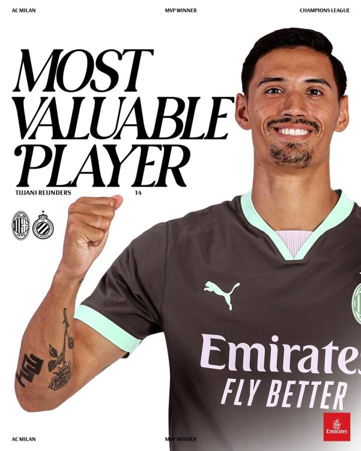 北京时间10月23日凌晨,欧冠联赛阶段第3轮,AC米兰在主场3-1战胜布鲁日。赛后,米兰官方宣布,赖因德斯当选此役队内最佳球员。