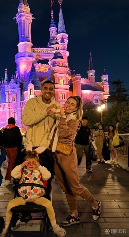 10月23日晚,上海海港队外援古斯塔沃的妻子马娅拉在社交媒体里晒出家庭亲子照,一家三口再次到上海迪士尼游玩打卡。