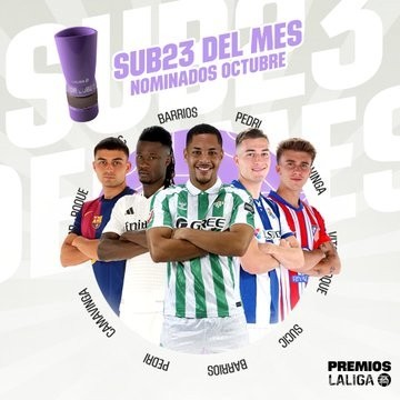 西甲联赛官方公布了西甲10月最佳U23球员候选名单,佩德里领衔,罗克、卡马文加、巴里奥斯、苏契奇在列。