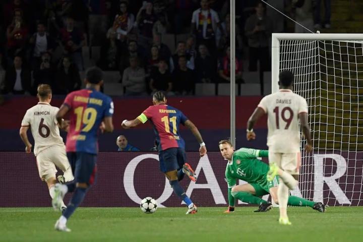 欧冠联赛阶段第3轮的一场较量中,巴塞罗那在上半场结束后暂时主场3-1领先拜仁慕尼黑。
