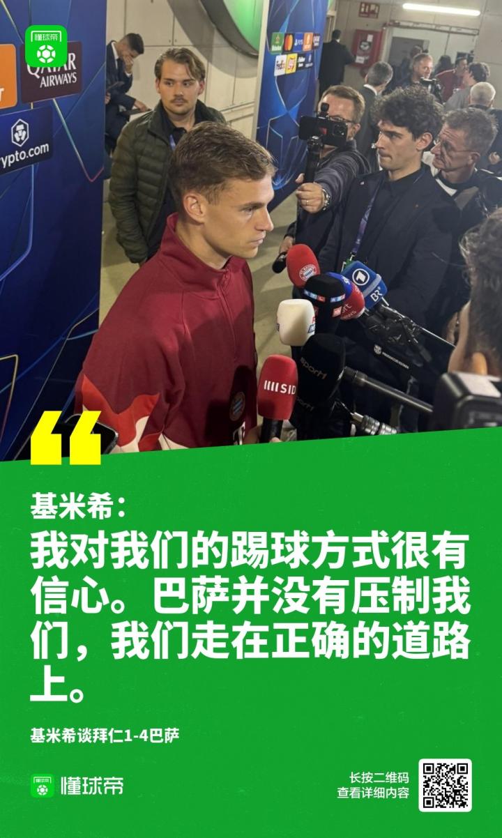 拜仁慕尼黑在欧冠客场1-4惨败于巴塞罗那,球队中场基米希在赛后采访中谈到了比赛的情况。