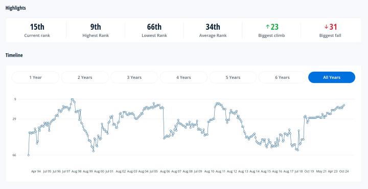 据统计,这是日本男足自2011年10月以来的最高排名,2011年9月,日本FIFA排名世界第15,2011年10月日本跌至世界第17。