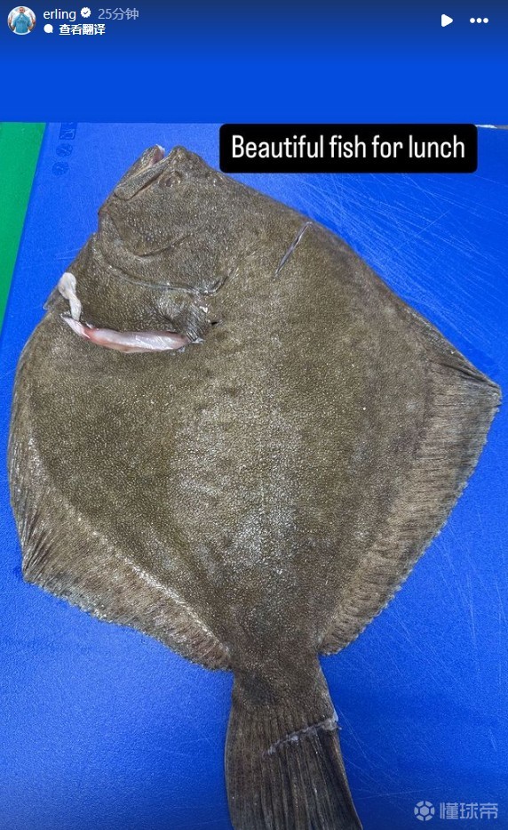 哈兰德在社交媒体上晒出了自己钓到的鱼,并配文:“很漂亮的鱼,适合午餐”。