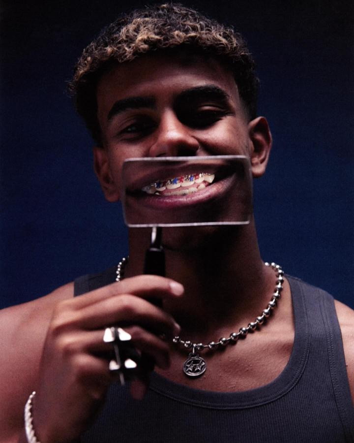 为迎接本周末的西班牙国家德比,珠宝品牌为巴萨新星亚马尔定制了红蓝星形牙套托槽。