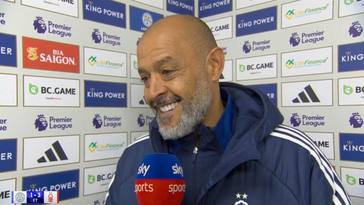 在率队3-1击败莱斯特城赛后,诺丁汉森林队主帅努诺接受了天空体育的采访。