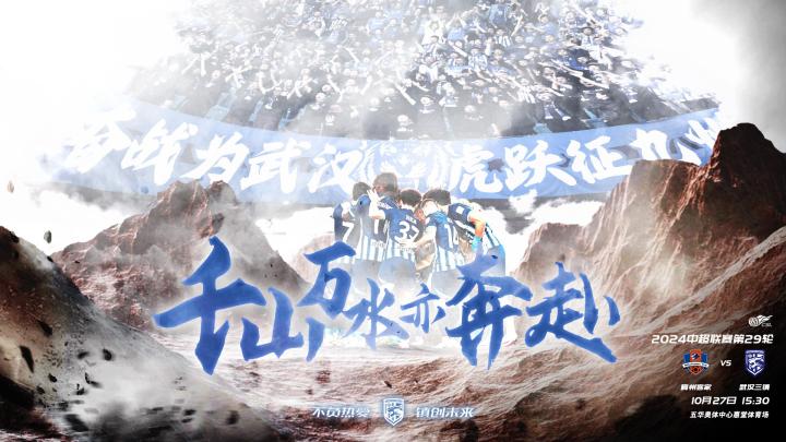10月27日下午15点30分,中超联赛第29轮,武汉三镇将在客场对阵梅州客家。赛前,武汉三镇足球俱乐部官方微博发布了本场比赛的赛前海报。